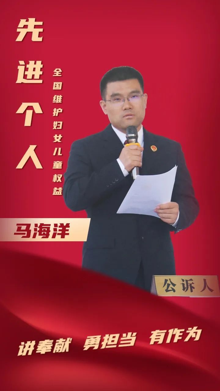 近日,中華全國婦女聯合會下發《全國婦聯關于表彰全國維護婦女兒童權益先進集體和先進個人的決定》,高陵區人民檢察院第一檢察部副主任馬海洋榮獲“全國維護婦女兒童權益先進個人”。
