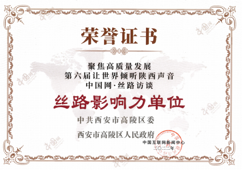 近日,高陵區在“聚焦高質量發展——第六屆讓世界傾聽陜西聲音”網絡主題宣傳活動中,榮獲中國互聯網新聞中心頒發的“絲路影響力單位”榮譽稱號。