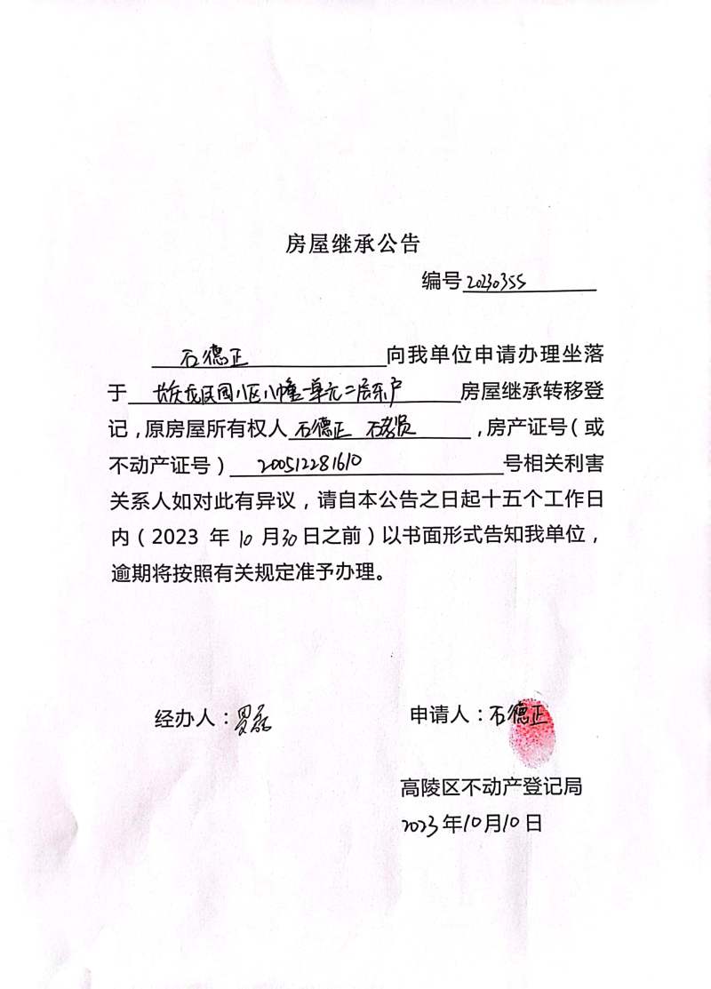 石德正房屋繼承公告 編號:202300355
