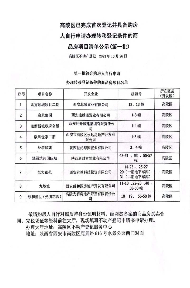首次登記商品房項目清單公示