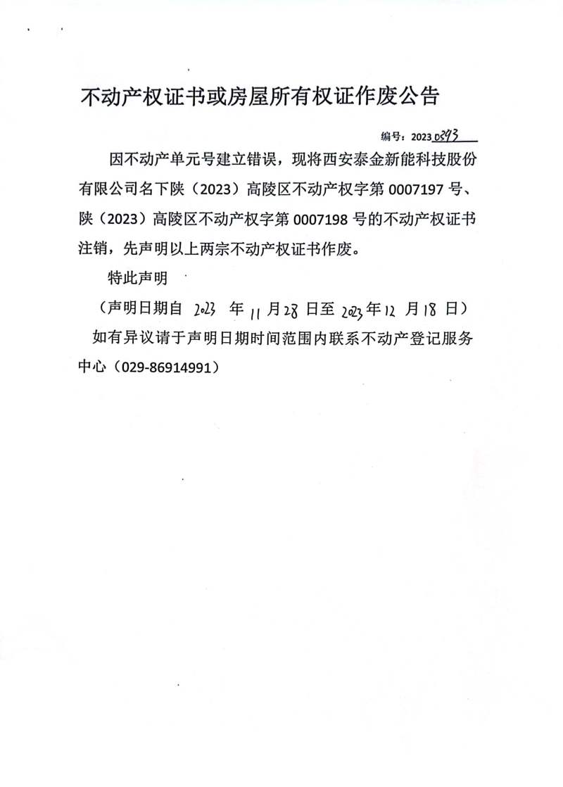 不動產權證書或房屋所有權證作廢公告編號:20230393