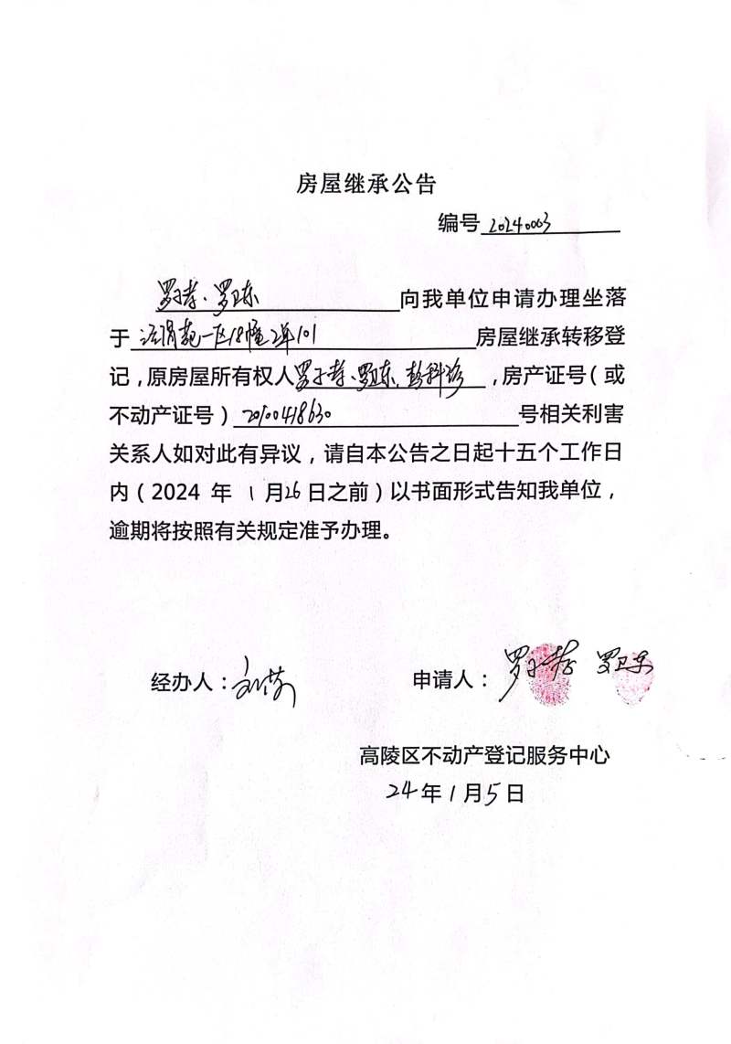羅子孝、羅子東房屋繼承公告 編號:20240003