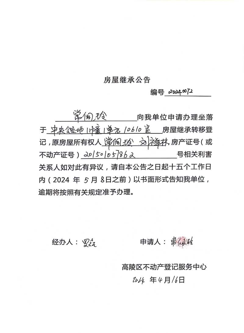 常佩玲房屋繼承公告 編號:20240072