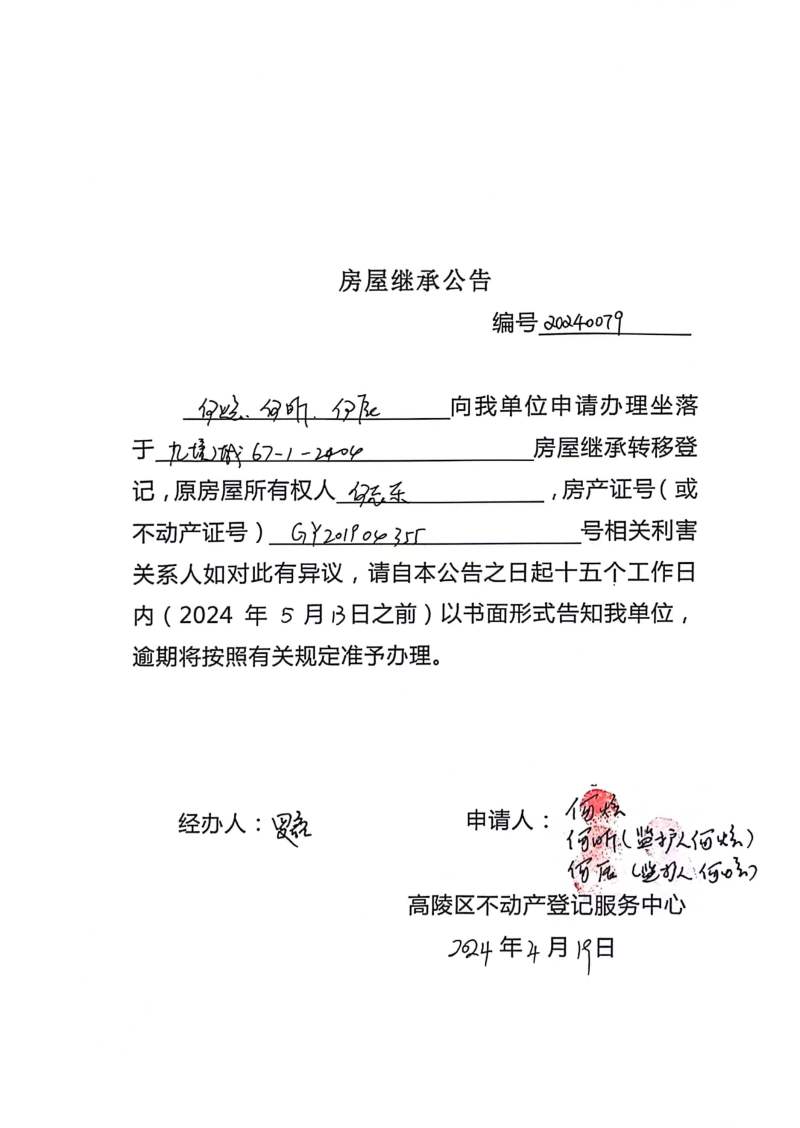 何炫、何昕、何辰房屋繼承公告 編號:20240079