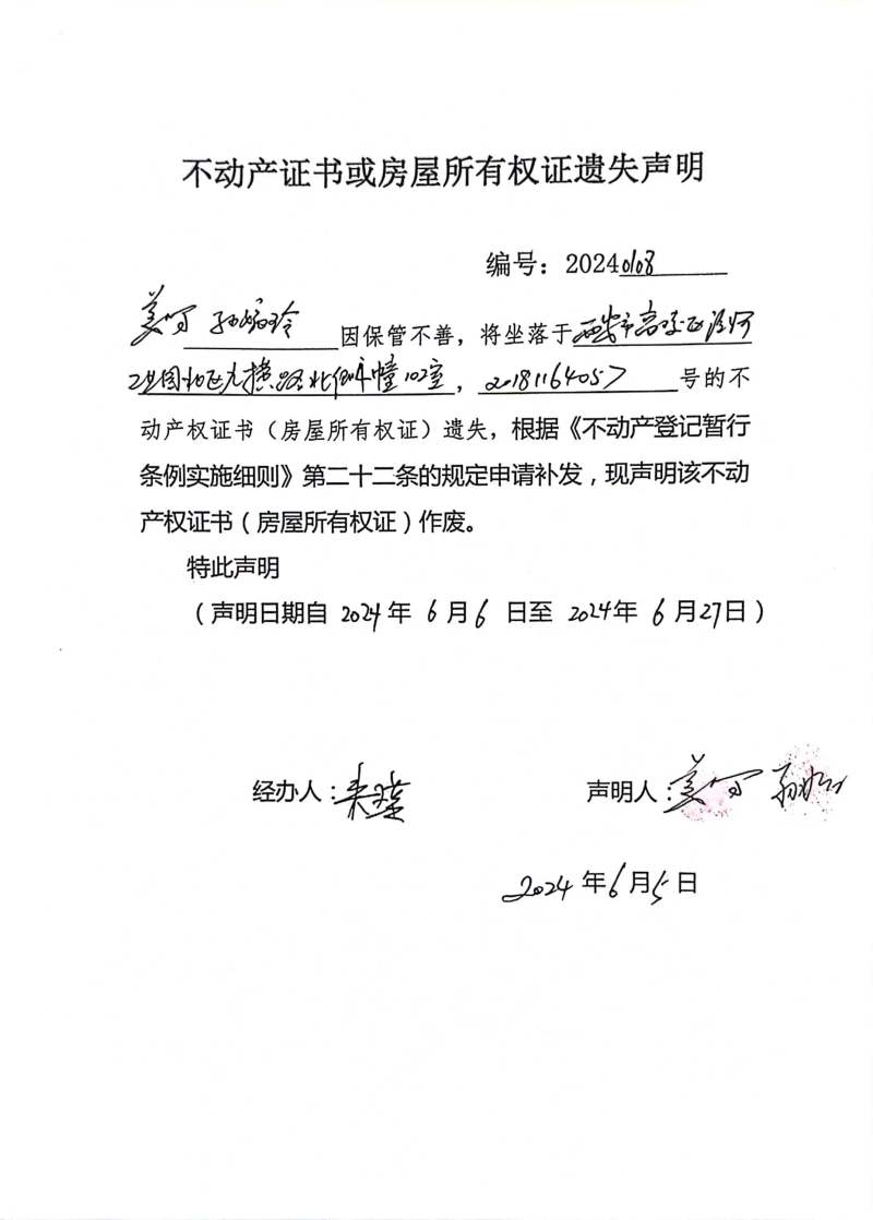 姜存軍、孫婉玲房屋繼承公告 編號:20240108