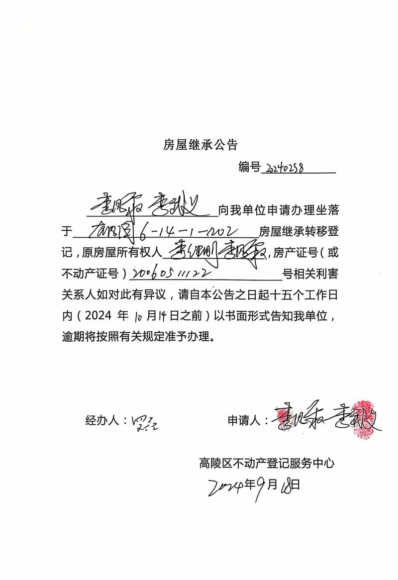 李鳳霞、李武義房屋繼承公告 編號:20240258