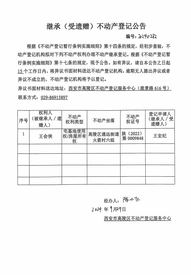 繼承(受遺贈(zèng))不動(dòng)產(chǎn)登記公告 編號(hào):20240282