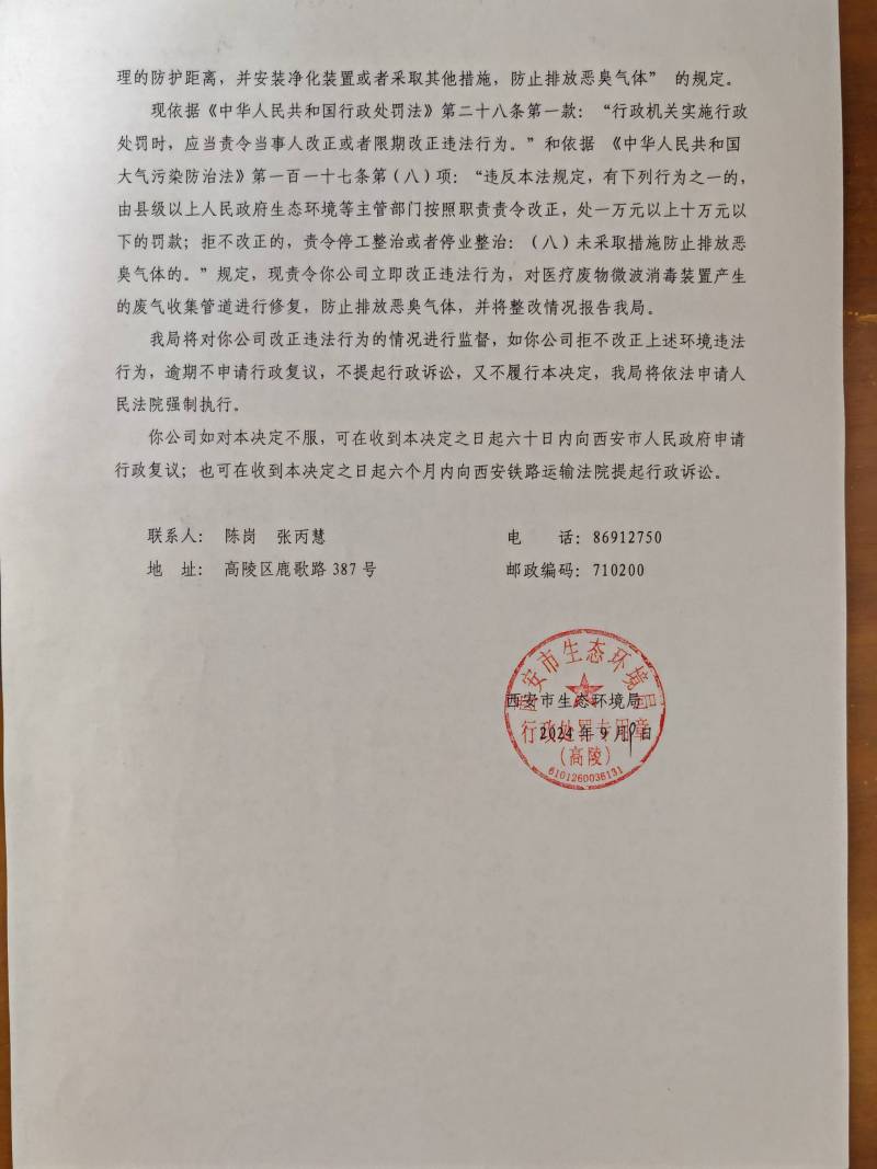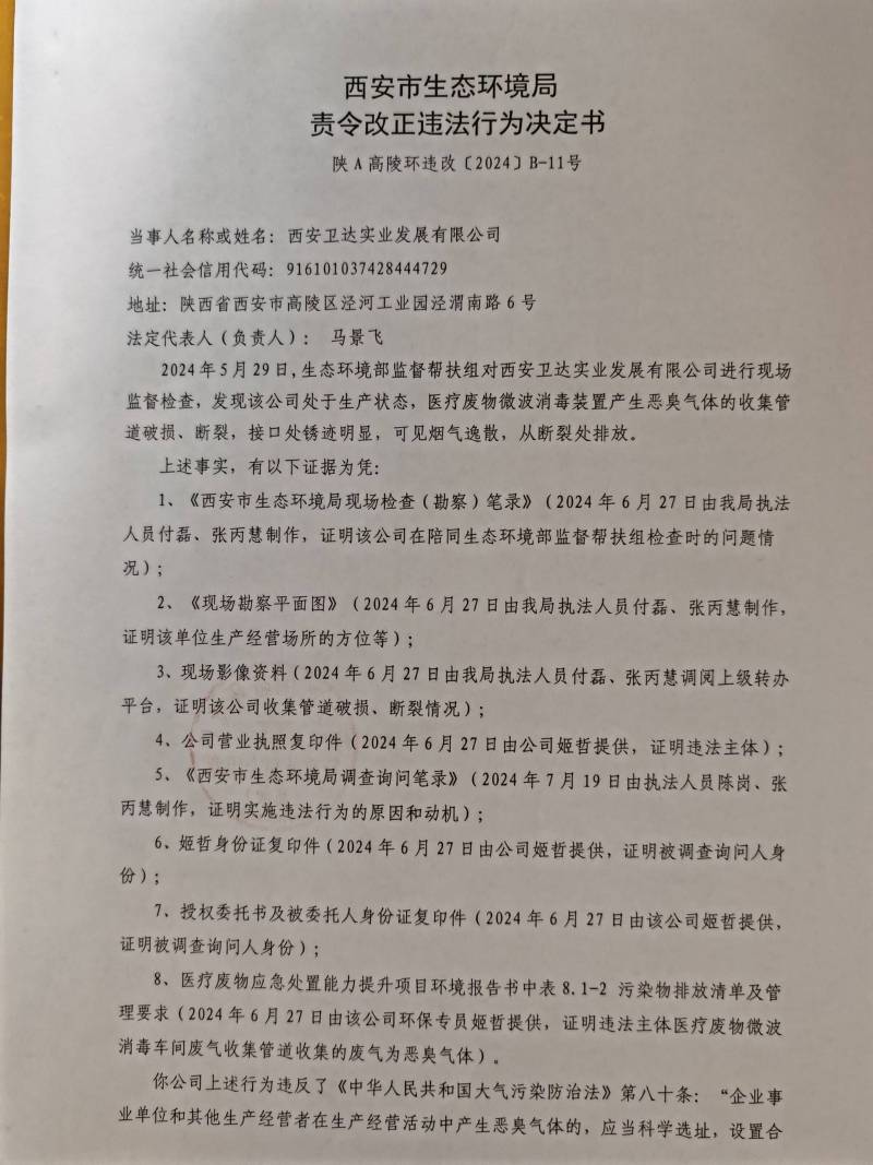 西安市生態環境局高陵分局責令改正違法行為決定書陜A高陵環違改【2024】B-11號