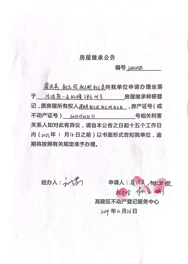 逄風真、杜玉玲、杜玉剛、杜玉良房屋繼承公告,編號:20240385