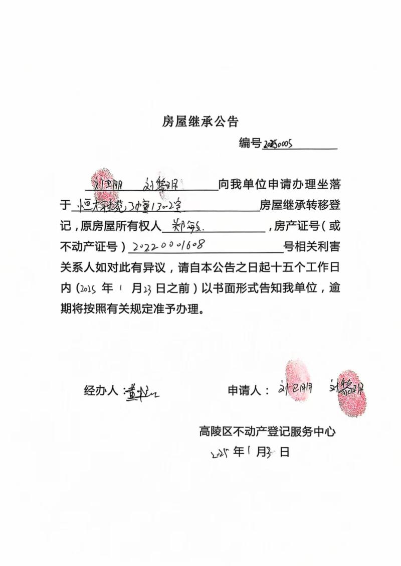 劉衛朋、劉黎明房屋繼承公告,編號:20250005