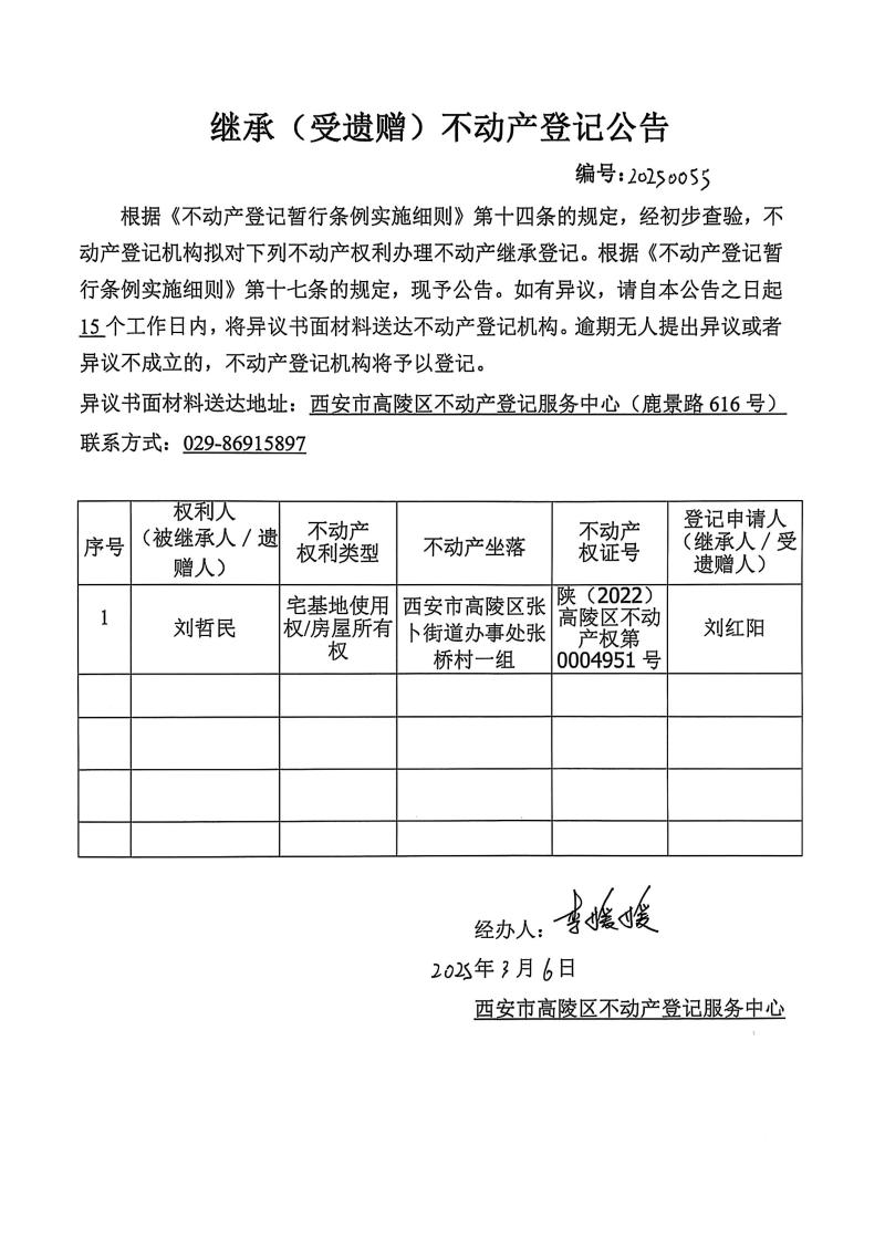 繼承(受遺贈)不動產(chǎn)登記公告,編號:20250055