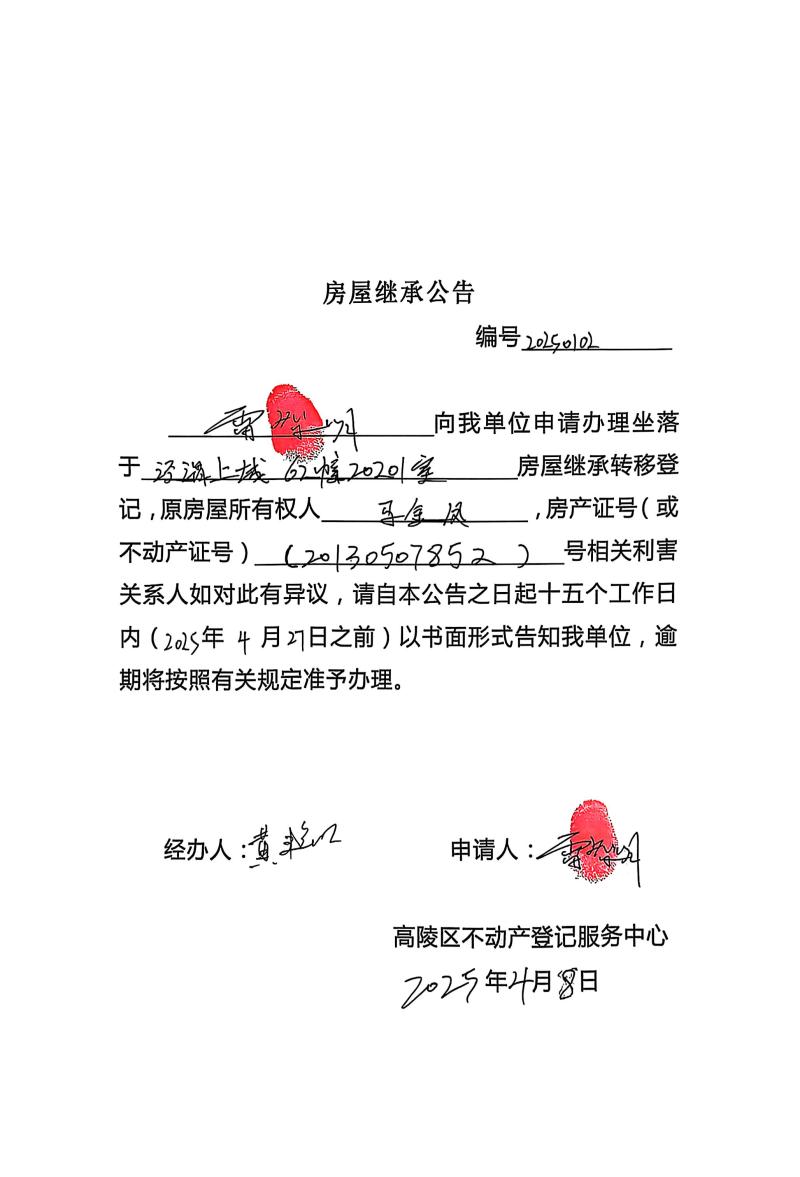 雷智明房屋繼承公告,編號:20250102