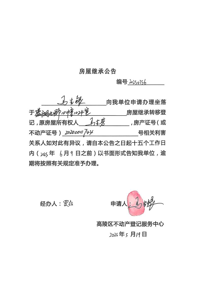 馬吉銀房屋繼承公告,編號:20250156
