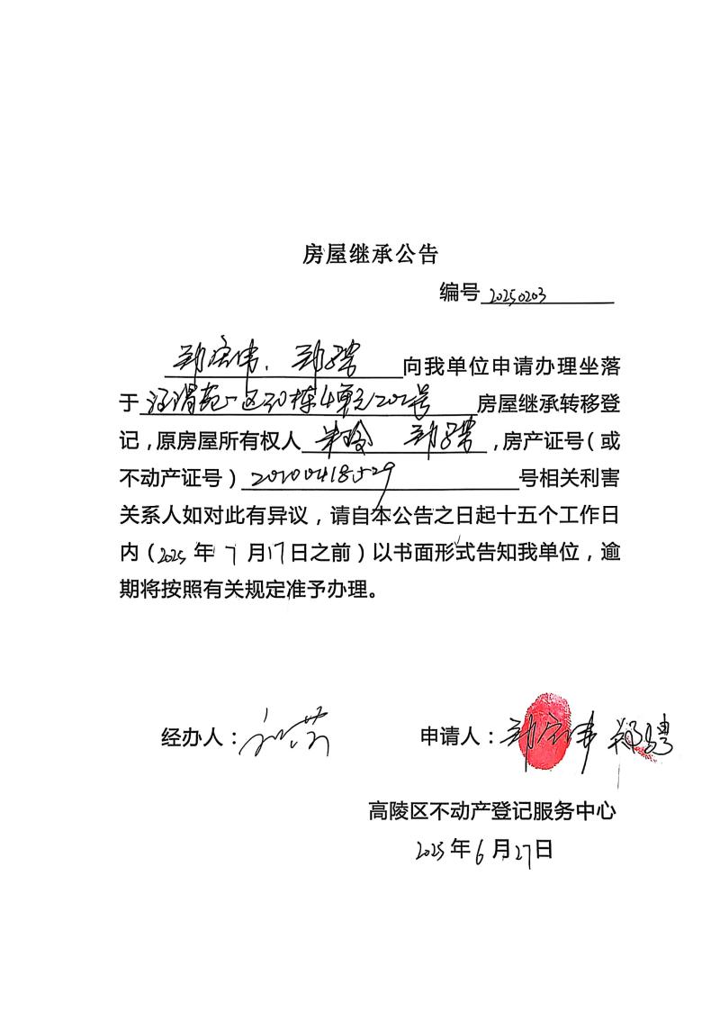 鄭宏偉、鄭聘房屋繼承公告,編號:20250203