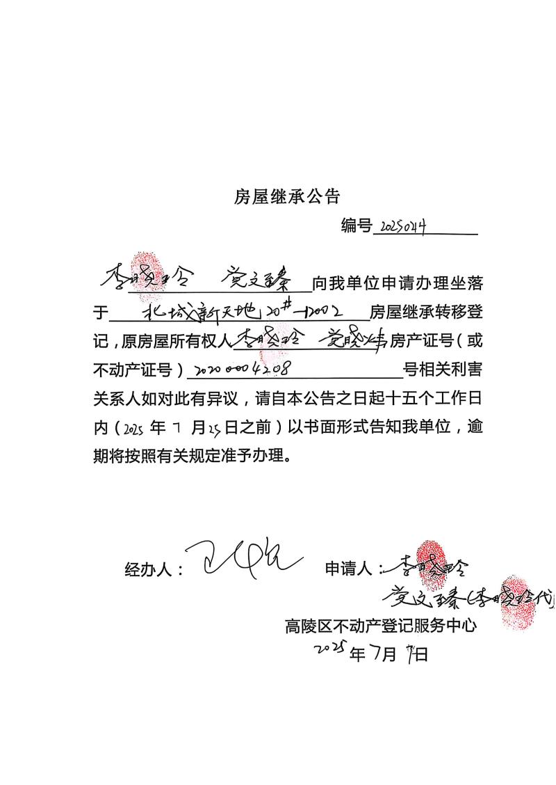 李曉玲、黨文臻房屋繼承公告,編號:20250214