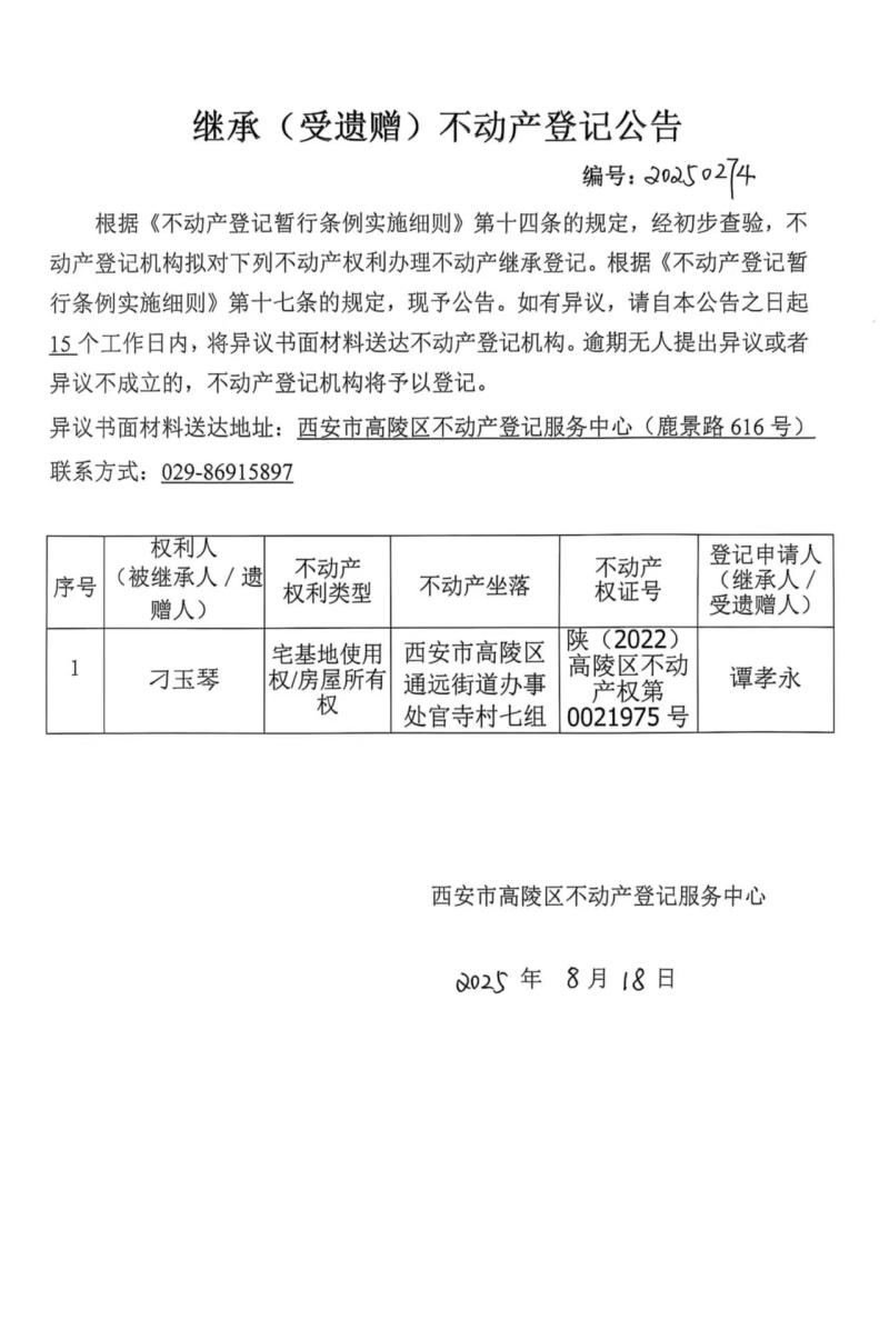 譚孝永繼承(受遺贈)不動產登記公告,編號:20250274