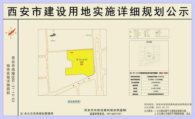 GL-21-14-02位于高陵區21單元。位于高陵區旅游大道以西、土地儲備用地以南、渭陽二路以北。宗地具體指標如下: