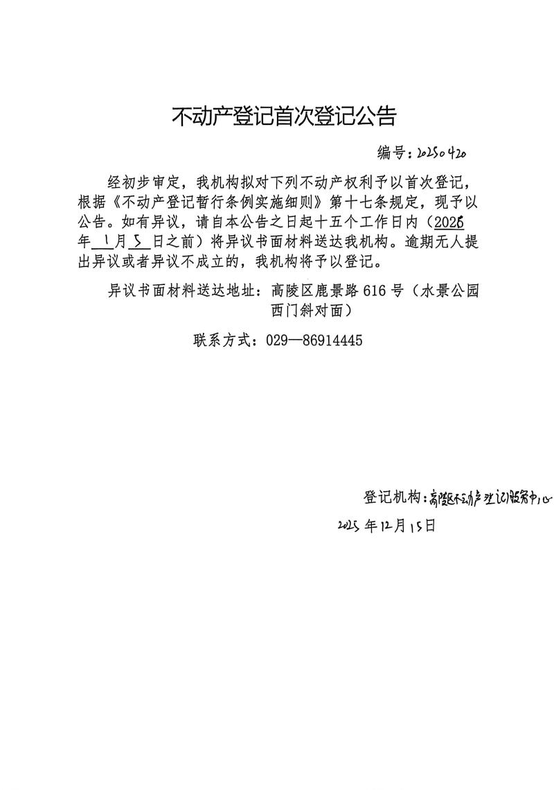 西安市高陵區零散戶房地一體首次登記公告.pdf