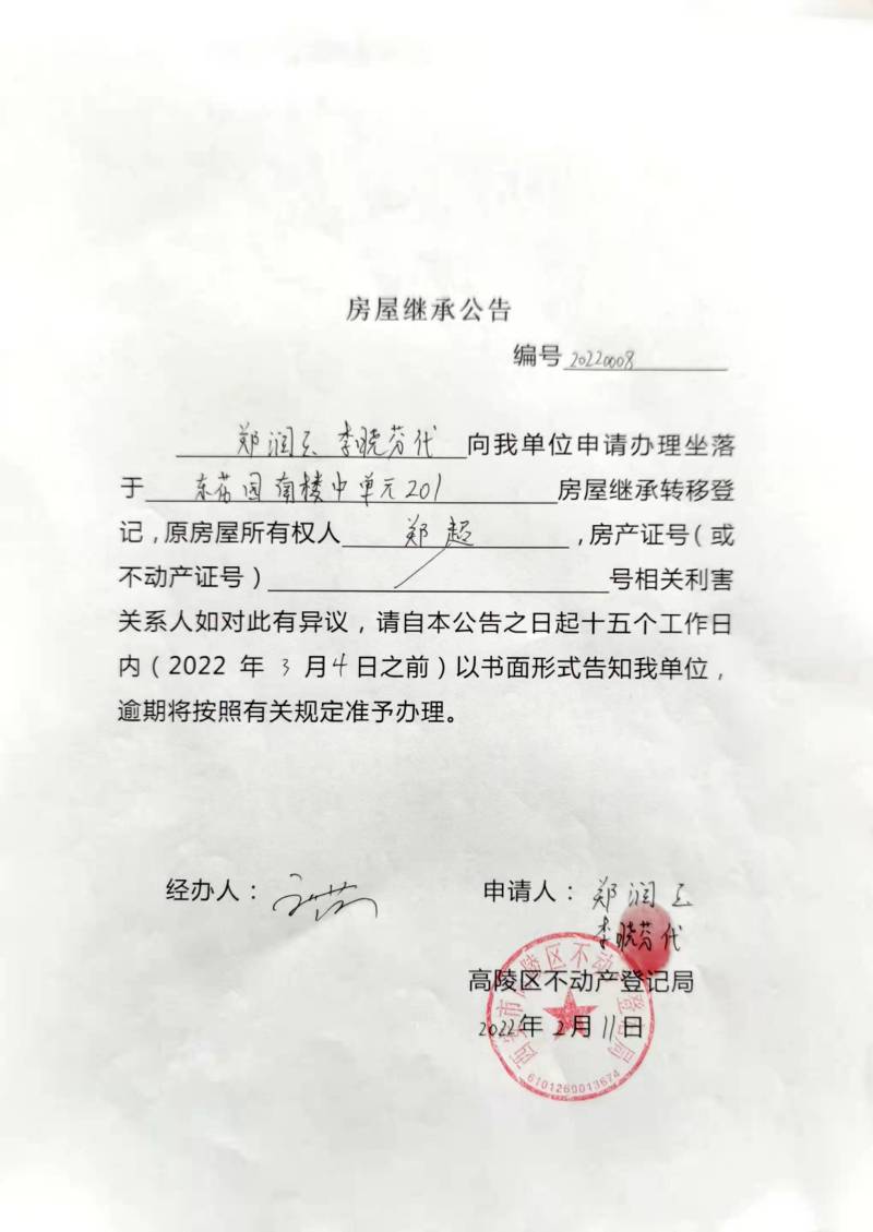 鄭潤玉房屋繼承公告編號:20220008