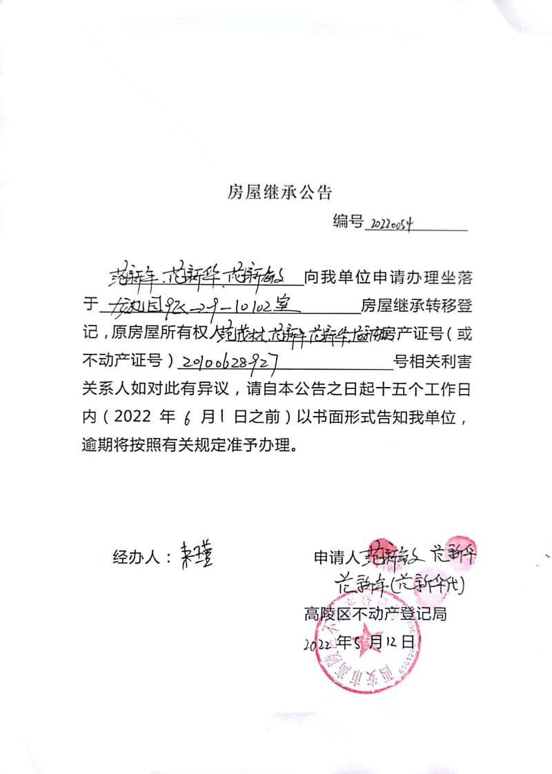 范新年、范新華、范新敏房屋繼承公告編號:20220054