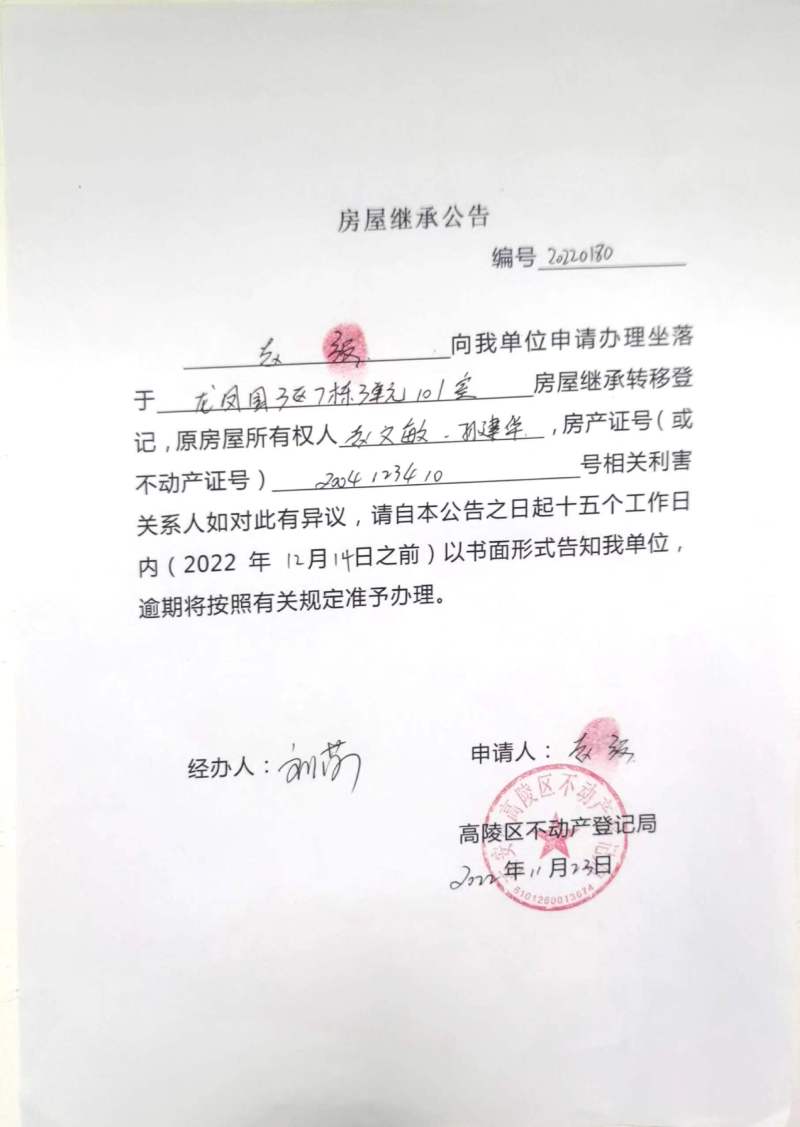 趙強房屋繼承公告 編號:20220180