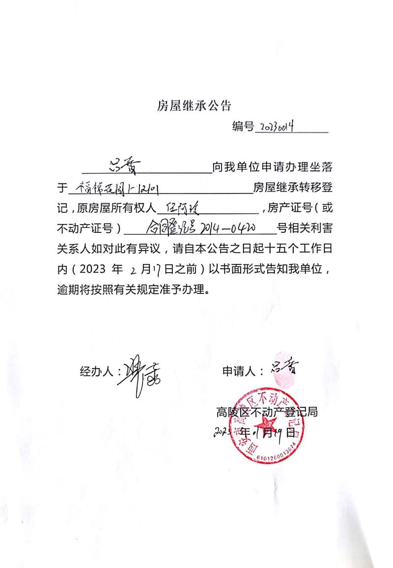 呂馨房屋繼承公告編號:20230014
