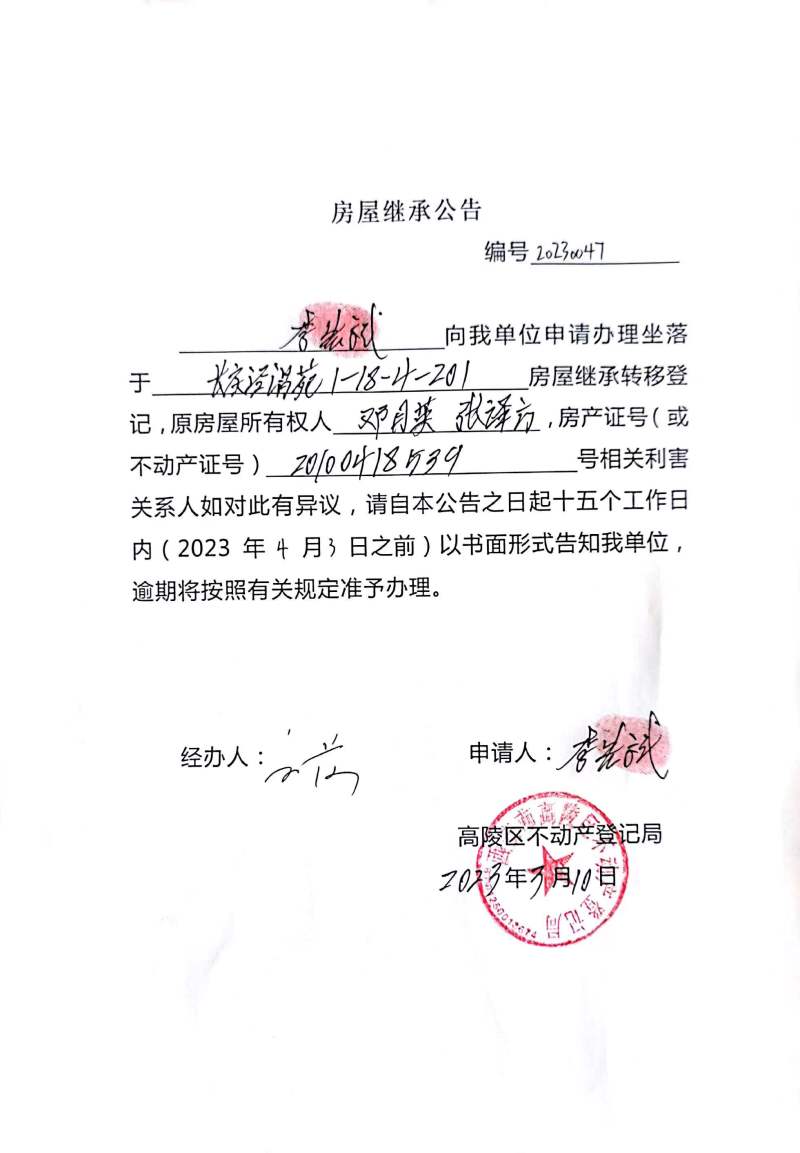 李宏斌房屋繼承公告 編號:20230047