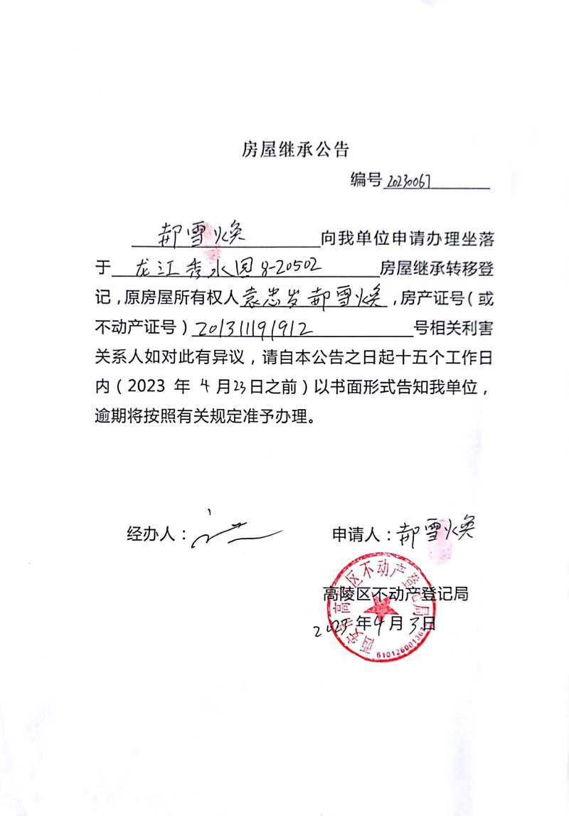 郝雪煥房屋繼承公告 編號:20230067