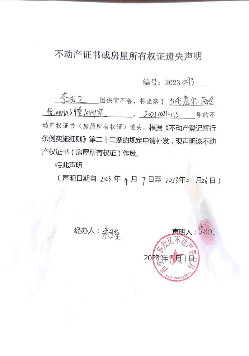李法衛房屋繼承公告 編號:20230073