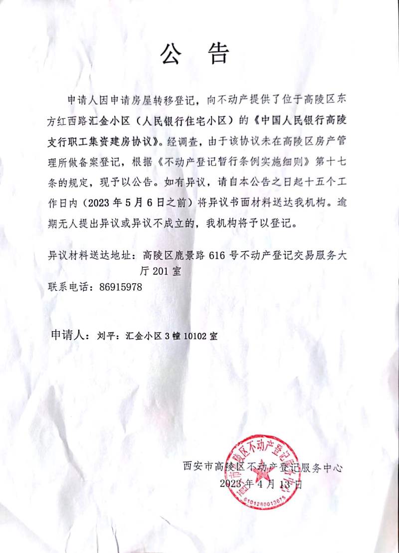 劉平不動(dòng)產(chǎn)轉(zhuǎn)移登記公告