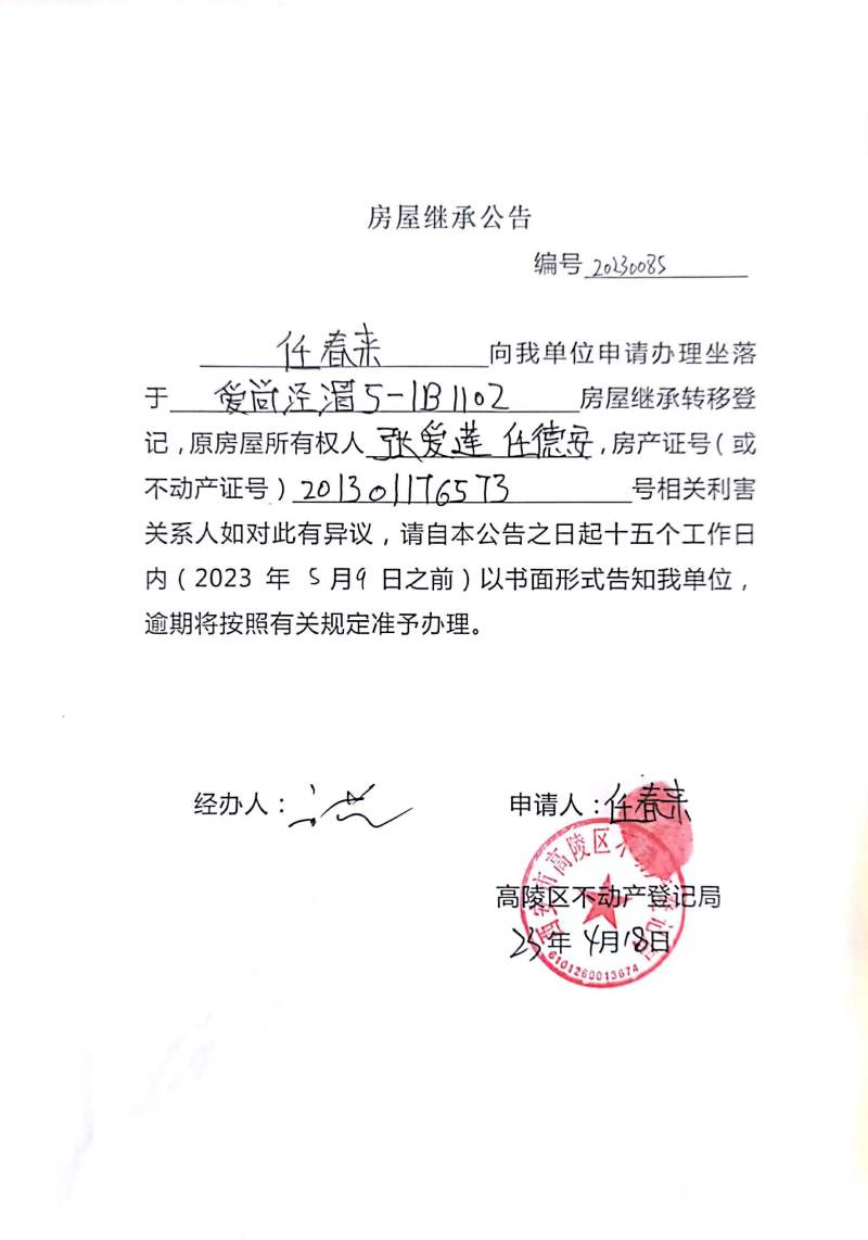任春來房屋繼承公告 編號:20230085