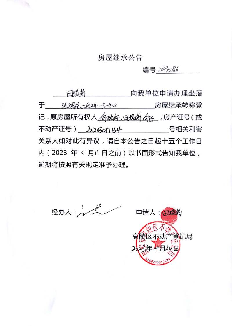 田瑛菊房屋繼承公告 編號:20230086