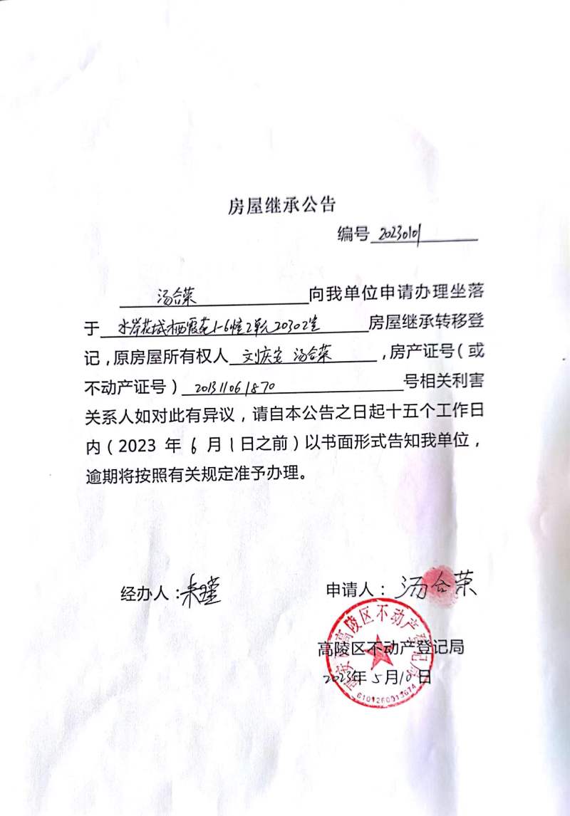 湯合榮房屋繼承公告 編號:20230101
