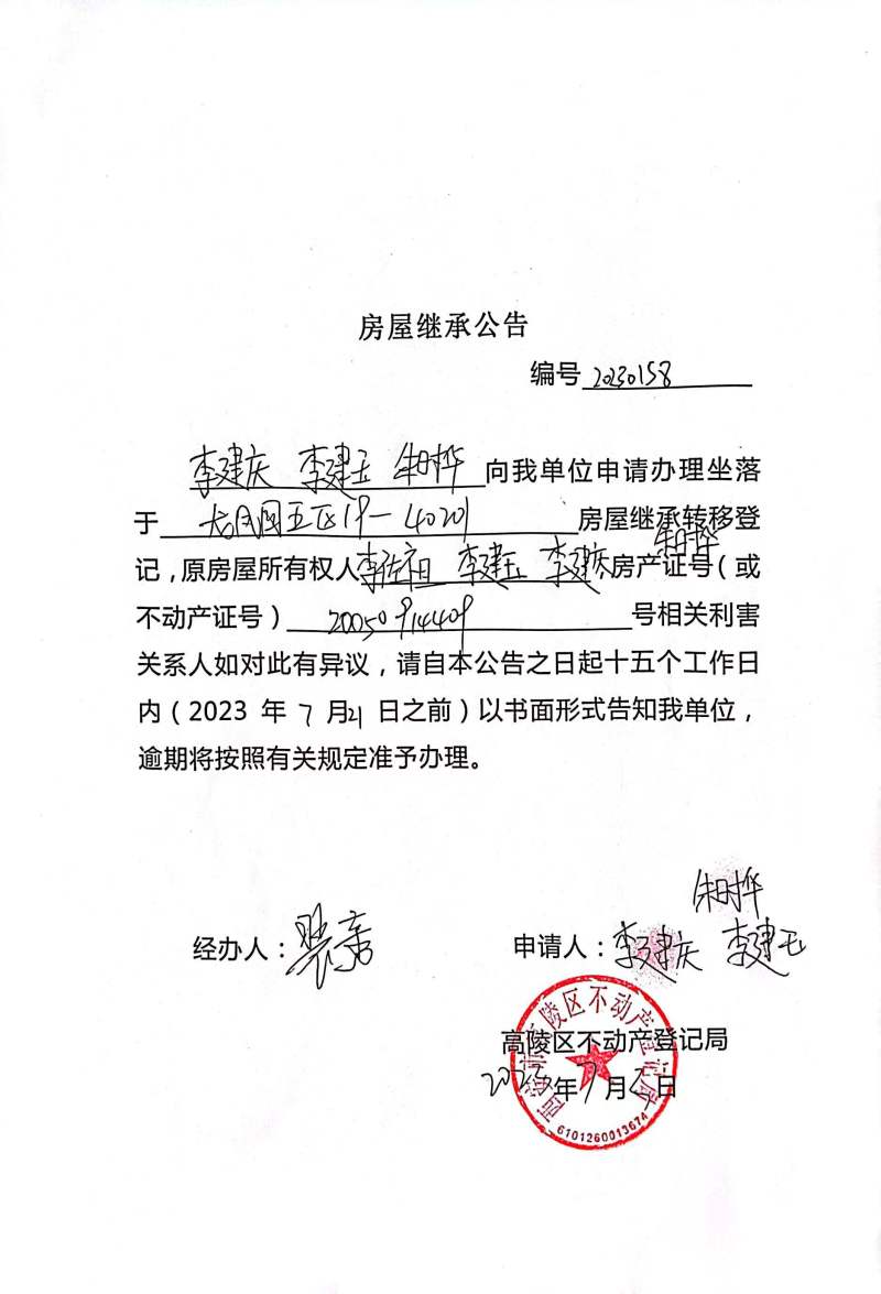 李建慶、李建玉、朱時華房屋繼承公告 編號:20230158