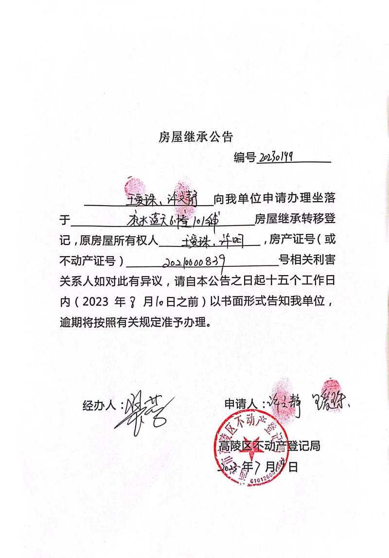 王愛珠、許文靜房屋繼承公告 編號:20230199
