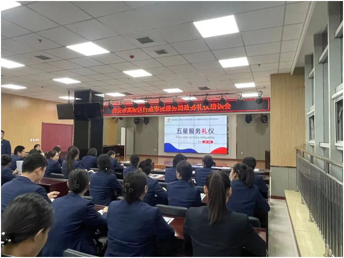 為深入推進政務服務標準化、規范化和便利化建設,進一步提升工作人員禮儀素養、業務水平和綜合素質,打造統一、規范、高效的政務服務,1月8日晚上,高陵區行政審批服務局組織開展了2024年第一期政務服務禮儀培訓,全體干部、各進駐單位窗口工作人員共100余人參加。
