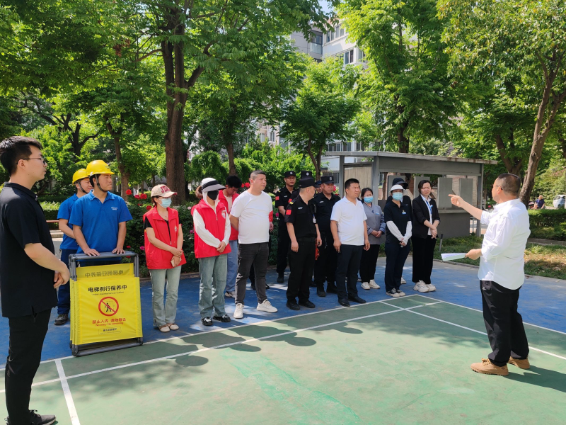 演練過(guò)程中模擬小區(qū)17號(hào)樓電梯發(fā)生困人事故,造成1人被困,被困人員通過(guò)電梯內(nèi)緊急呼叫裝置向值班室發(fā)出求救信息,值班室接到報(bào)警后立即啟動(dòng)應(yīng)急救援預(yù)案,救援人員迅速到位,設(shè)置安全警示標(biāo)志、查驗(yàn)電梯故障、手動(dòng)釋放抱閘等工作同步開展,快速、順利救出被困人員。在被困人員救出后,維保人員繼續(xù)全面排查檢修電梯設(shè)備故障,直至電梯恢復(fù)正常運(yùn)行。整個(gè)演練過(guò)程緊張有序,處置及時(shí)有效,被困人員情緒穩(wěn)定。