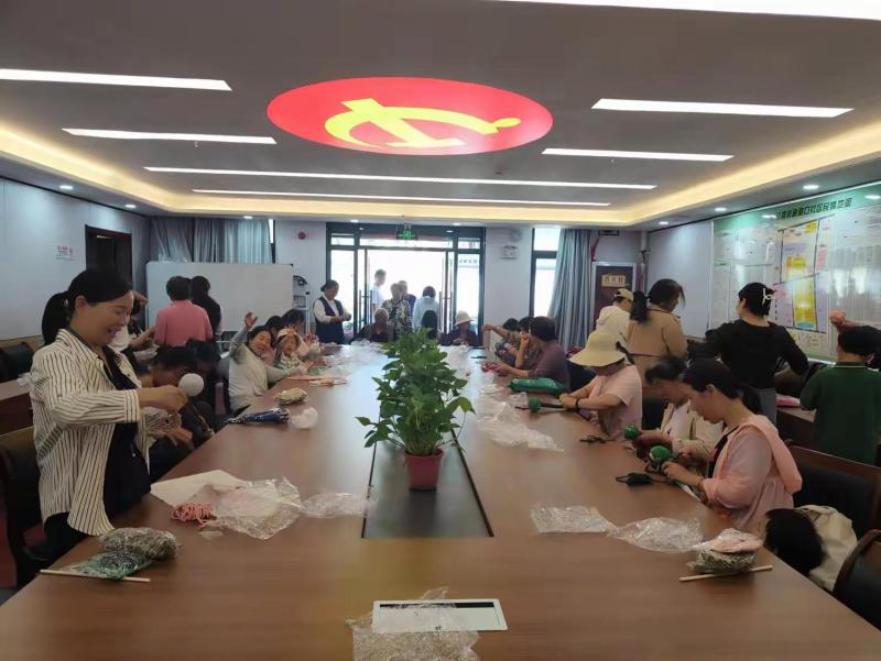隨后詳細介紹艾草錘的制作方法,并為居民朋友發(fā)放制作所需的材料和工具。放好藥包、捏緊團球、包裹棉布、纏繞棉線……在社區(qū)志愿者和物業(yè)工作人員的共同指導下,大家相互交流,有說有笑,不一會兒,一個個藥香撲鼻的艾草錘便制作完成。