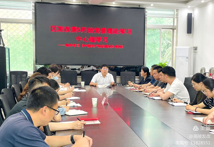5月8日,區發改委黨委召開理論學習中心組學習(擴大)會議,專題學習《中國共產黨紀律處分條例》。黨委書記張光明主持會議并講話。