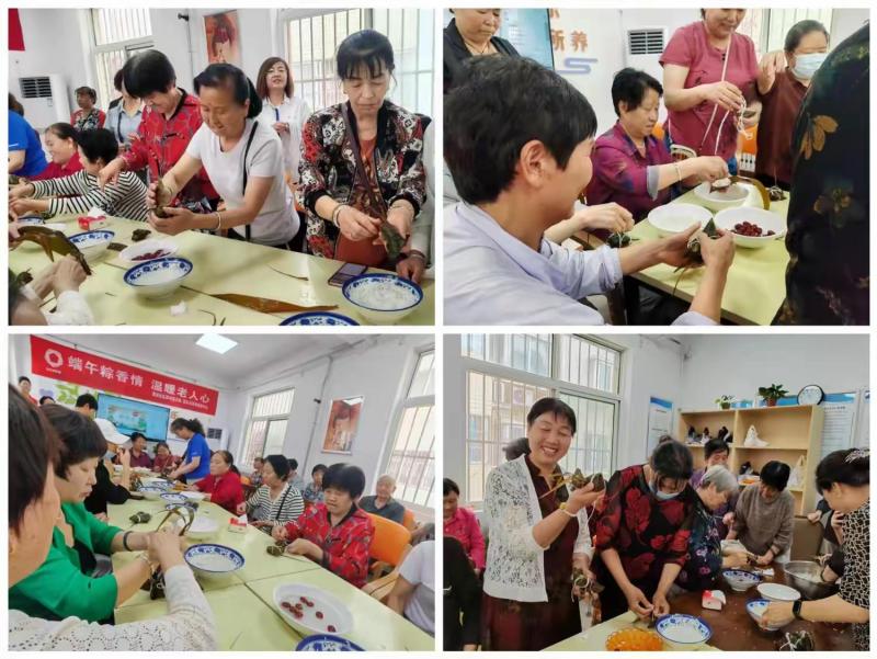 “在綠綠的粽葉里邊挖呀挖呀挖,包小小的糯米大家笑哈哈,在香糯的江米里面挖呀挖呀挖,種大大的蜜棗大家樂開花,.......”6月7日上午在渭濱社區養老服務站一片歡聲笑語,阿姨叔叔們跟著寶石花養老運營中心的小劉一起“挖呀挖呀挖”游戲中開始了渭濱社區迎端午系列活動之一的“包粽子”活動。活動現場桌子上擺放著時令水果在濃濃的粽香味中,大家一邊品嘗西瓜等水果,社區曹書記和養老運營中心尚總帶領工作人員一邊給在座的叔叔阿姨們點朱砂,送上端午祝福。綠色的粽葉、雪白的糯米、香甜的蜜棗等食材,通過捋粽葉-做漏斗-填糯米-壓緊實-封口-捆綁,在一雙雙巧手下,零散的原材料轉眼就變成一個個飽滿而精致的粽子,包粽子現場一派熱火場面。充分感受到了社區大家庭的溫暖和關懷,度過了一個難忘而有意義的端午節。