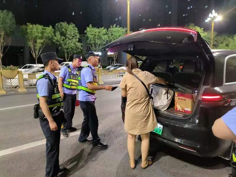 6月26日晚,西安市公安局高陵分局渭橋派出所出動警力8人,警車2輛,在轄區鹿苑大道組織開展武裝設卡盤查工作。