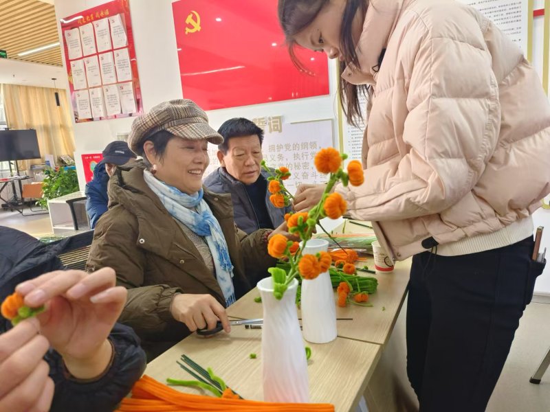 制作過程中,大家熱情高漲,積極動手嘗試,充分發揮自己的想象力和創造力,將一根根普通的扭扭棒變成了一個個栩栩如生的“小柿子”。有的居民還別出心裁地為柿子添加了一些小裝飾,讓作品更加獨特?,F場歡聲笑語不斷,大家互相交流、互相幫助,氣氛十分融洽。