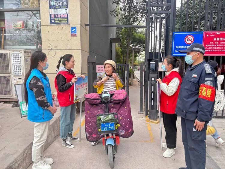 同時社區黨員、志愿者和網格員在轄區內對騎電動車不戴頭盔、超載、亂停亂放、逆行等不文明行為進行勸導,引導居民自覺遵守交通規則,提高交通安全意識和自我防范意識,確保道路交通井然有序。