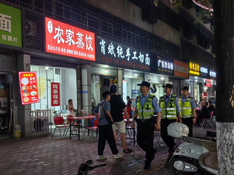 2025年5月5日晚,按照西安市公安局高陵分局統(tǒng)一部署,分局鹿苑派出所出動警力7人,警車1輛,在轄區(qū)體育場、龍發(fā)籃球場、案件高發(fā)小區(qū)周邊及南十字夜市攤等盜竊手機頻發(fā)區(qū)域進行巡邏防控,采取步巡+車巡巡邏方式,在巡邏途中進行音頻提示+語言提醒,提醒群眾看護好自己隨身財物,保護人民群眾財產(chǎn)安全,嚴厲震懾侵財類犯罪,提高街面見警率與管事率,形成強大威懾力。
