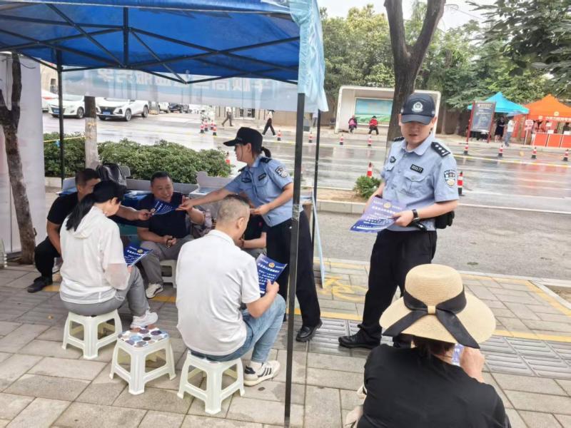 為提高廣大考生及家長識騙防騙能力,西安市公安局高陵分局崇皇派出所立足主防職能,將反詐陣地前移,在西安市高陵區高陵三中高考考點周邊對候考考生及學生家長開展反電信詐騙宣傳活動。