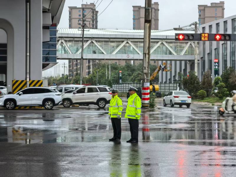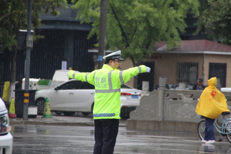 二是強化疏導管控,保障通行有序。執勤民輔警提前到崗,冒雨奮戰在路面一線。在主要路口、學校周邊等重點部位,加大指揮疏導力度,引導車輛有序通行,防止發生長時間、大范圍交通擁堵。對積水嚴重暫時無法通行的路段,及時設置警示標志,實施臨時交通管制,并配合相關部門開展排水作業,同時通過喊話、手勢等方式提醒過往車輛、行人繞行避險,注意安全。