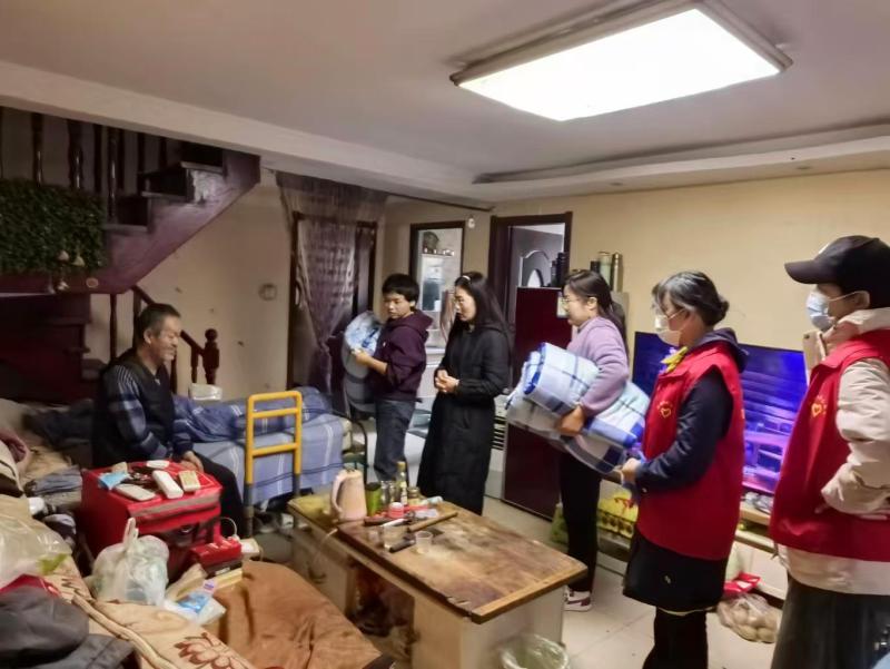 “咚咚咚……”伴隨著輕柔的敲門聲,工作人員來到周叔叔和阿姨的家。這對老人均患有腦梗,行動(dòng)不便,日常家務(wù)難以自理。工作人員第一時(shí)間遞上厚實(shí)的保暖棉被,“這被子沉實(shí),蓋著暖和!”大家一邊小心翼翼地幫老人將新棉被鋪展在床上,一邊細(xì)細(xì)叮囑老人注意保暖。陽光透過窗欞灑在嶄新的棉被上,暖黃的光暈里,兩位老人臉上漾開欣慰的笑容,不大的臥室瞬間被貼心的暖意填滿。