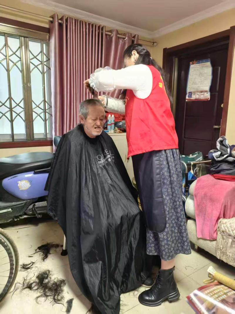 鋪好棉被,暖心服務(wù)隊(duì)立刻分頭行動(dòng),開啟“暖心模式”:有人拿起掃帚仔細(xì)清掃地面,不放過任何一處灰塵;有人擦拭窗臺、桌椅,讓家具煥發(fā)光潔;就連廚房角落的油污,也被大家耐心擦洗干凈。更有專業(yè)志愿者拿出理發(fā)工具,俯身為老人服務(wù)。“叔叔,您喜歡什么發(fā)型?咱們慢慢理,不著急。”志愿者輕聲詢問,動(dòng)作輕柔地為老人修剪頭發(fā)。推子嗡嗡轉(zhuǎn)動(dòng),細(xì)碎的頭發(fā)簌簌落下,理完發(fā)的老人對著鏡子一照,不禁笑道:“清爽多了!謝謝你們想著我,心里真熱乎!”