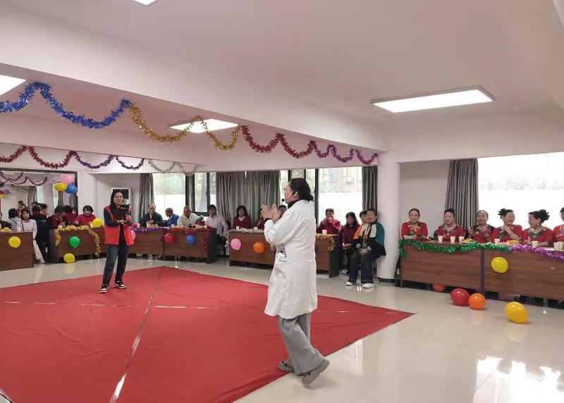 活動當天,五彩繽紛的活動廳喜氣洋洋,文藝匯演在居民的期待中拉開帷幕。“暖陽陽”合唱團一曲《夕陽紅》,唱出歲月從容;社區舞蹈隊獻上《江南情》,踏出柔美舞姿;精彩創意小品《小媳婦回娘家》,引來陣陣歡聲。形式多樣的節目,盡顯“老有所為”的風采。社區同步聯動民警、醫生,為大家分享《防詐小課堂》與《秋冬養生技巧》,讓節日祝福更添實用價值。