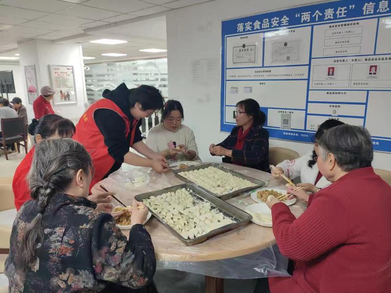文藝演出落幕,高·幸食堂的“餃子宴”接續傳遞溫暖。社區志愿者分發準備好的軟薄面片、鮮香餡料。老人們熱情圍坐,包餃子話家常,其樂融融。一個個餃子形態各異,在指尖翻飛間成形,宛如一場舌尖上的團圓,更化作了連接社區親情、凝聚共識的暖心紐帶。
